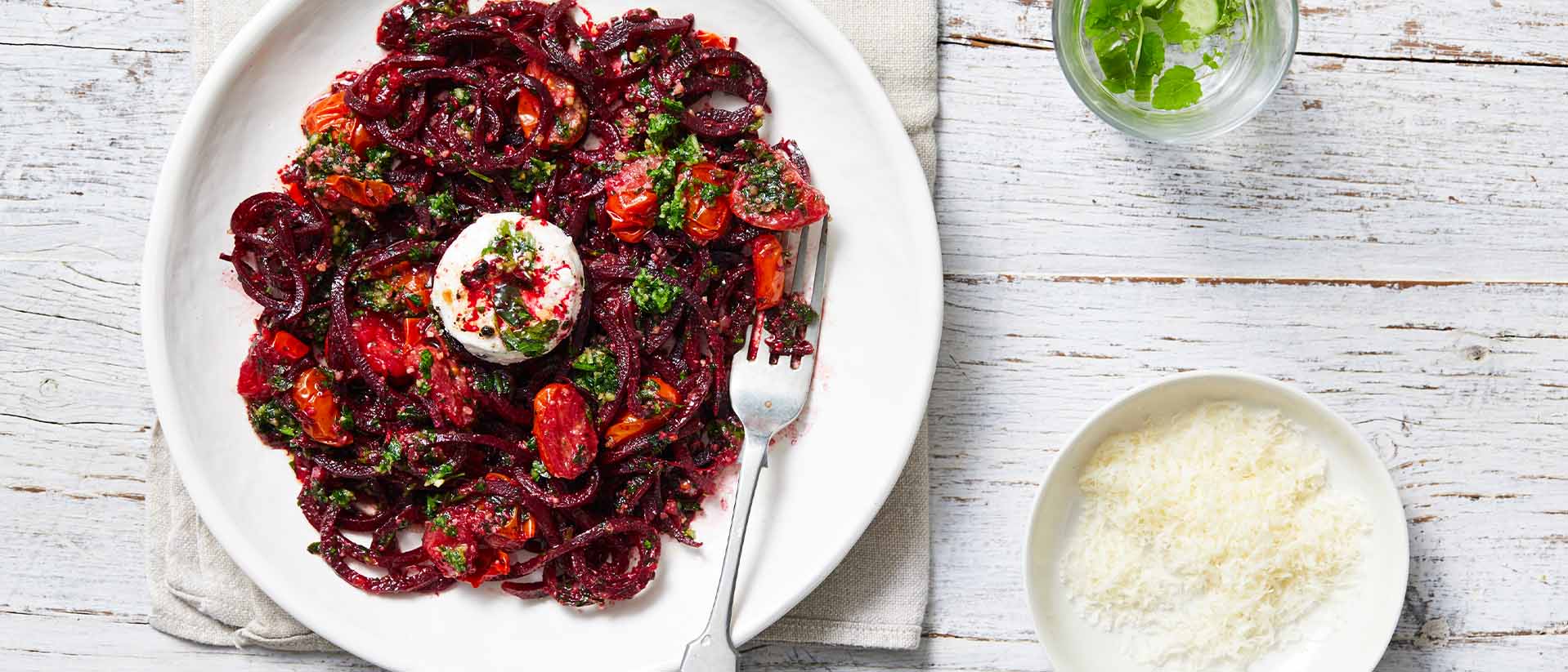 BEETROOT SPAGHETTI WITH PARSLEY AND WALNUT PE...
