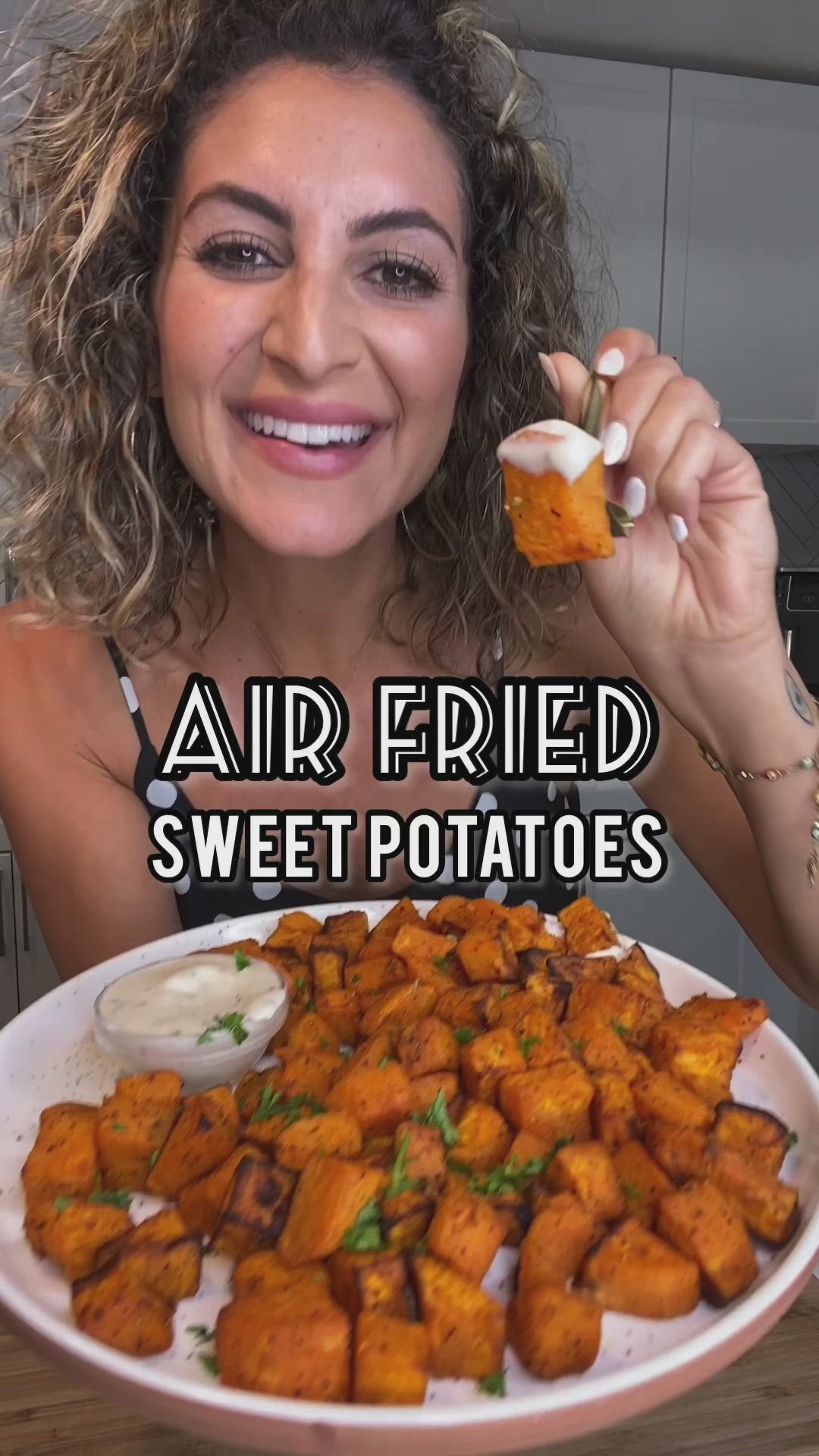 The BEST Air Fryer Roasted Sweet Potato Cubes