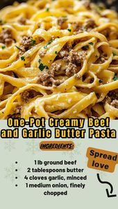 One pot creamy beef and garlic butter pasta and more