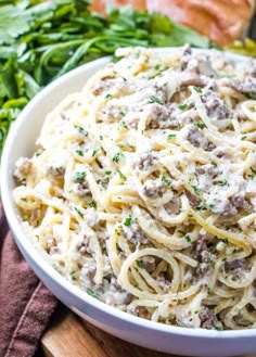 Garlic Parmesan Linguine Pasta With Creamy Beef