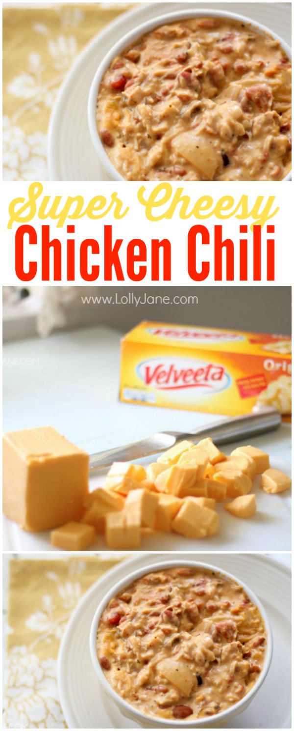 Creamy Velveeta cheesy chicken chili | Recipe | Velveeta recipes, Cheesy chicken, Chili