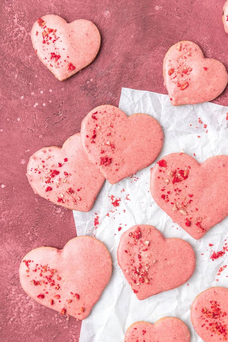 Heart Shaped Strawberry Shortbread Cookies | Sugar cookie frosting, Strawberry cookies, Shortbread cookies
