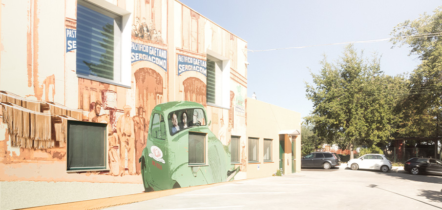 Sergiacomo, da mugnaio, decide di fondare nella zona del Carmine (proprio a Penne) un pastificio “primordiale”, che prevedeva l'utilizzo della forza umana o quella degli animali. Mentre a gestire l'organizzazione e la produzione era Zia Serafina, detta Fafina. La produzione avveniva solo in estate perchè l'asciugatura poteva avvenire solo all'aperto sfruttando le correnti di aria calda. L'amore per la pasta spinge uno dei figli di Raffaele, Gaetano Sergiacomo , a dare vita al primo pastificio industriale.