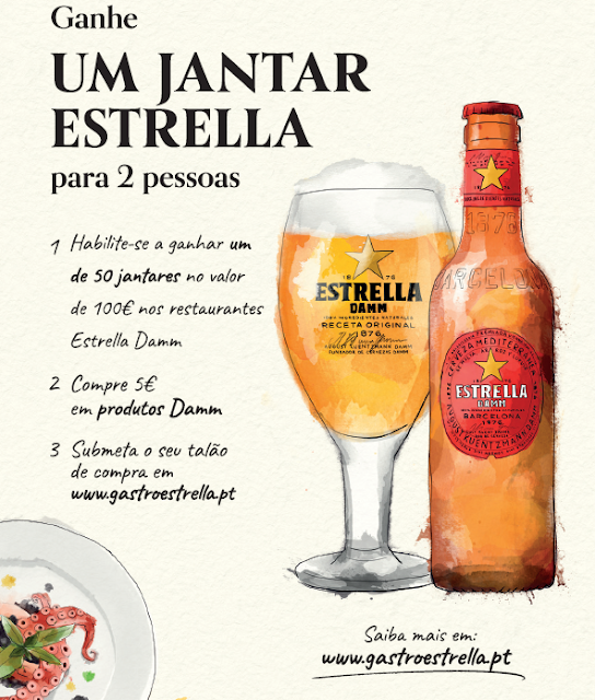 A cerveja Estrella Damm está a promover a iniciativa GastroEstrella até 7 de Julho, em parceria com 25 restaurantes de topo a nível nacional. Através de um concurso disponível online a marca oferece jantares duplos no valor de 100€ aos consumidores que adquirirem Estrella Damm em supermercados e hipermercados em todo o país.