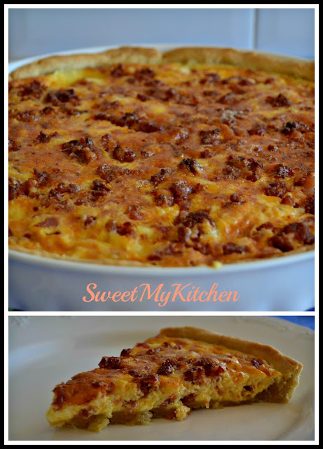 Nunca tinha experimentado fazer uma quiche que tivesse chouriço e como tinha um no frigorífico pareceu-me que era uma óptima opção.