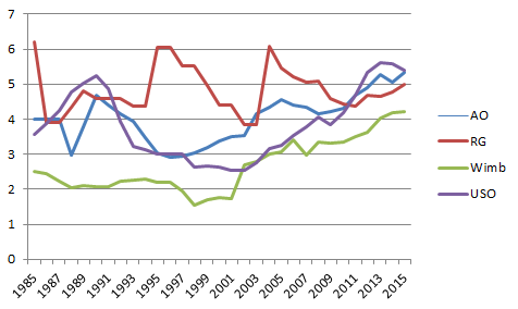 Surface RallyLen FHP/100 BHP/100 Indoor Hard 3.7 +8.5 +0.0 Outdoor Hard 3.9 +3.2 -5.8