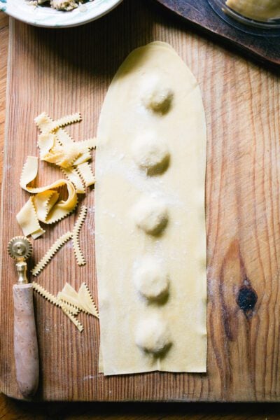 You’ll need one ball of homemade pasta dough or sourdough pasta. If you’ve never made ravioli before, I recommend reading my beginner’s guide to fresh homemade ravioli first.