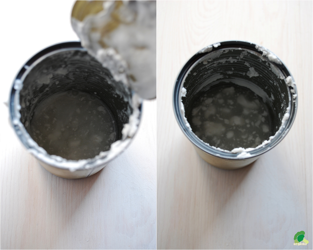 | Tak powinno wyglądać mleko, które nadaje się do ubicia. Jest bardzo twarde, ciężko się je wyjmuje z puszki. |