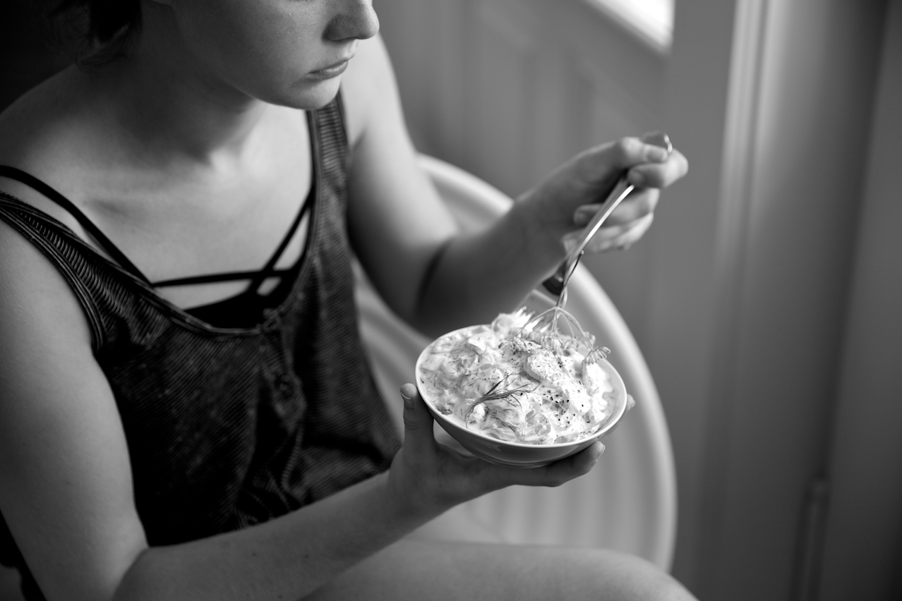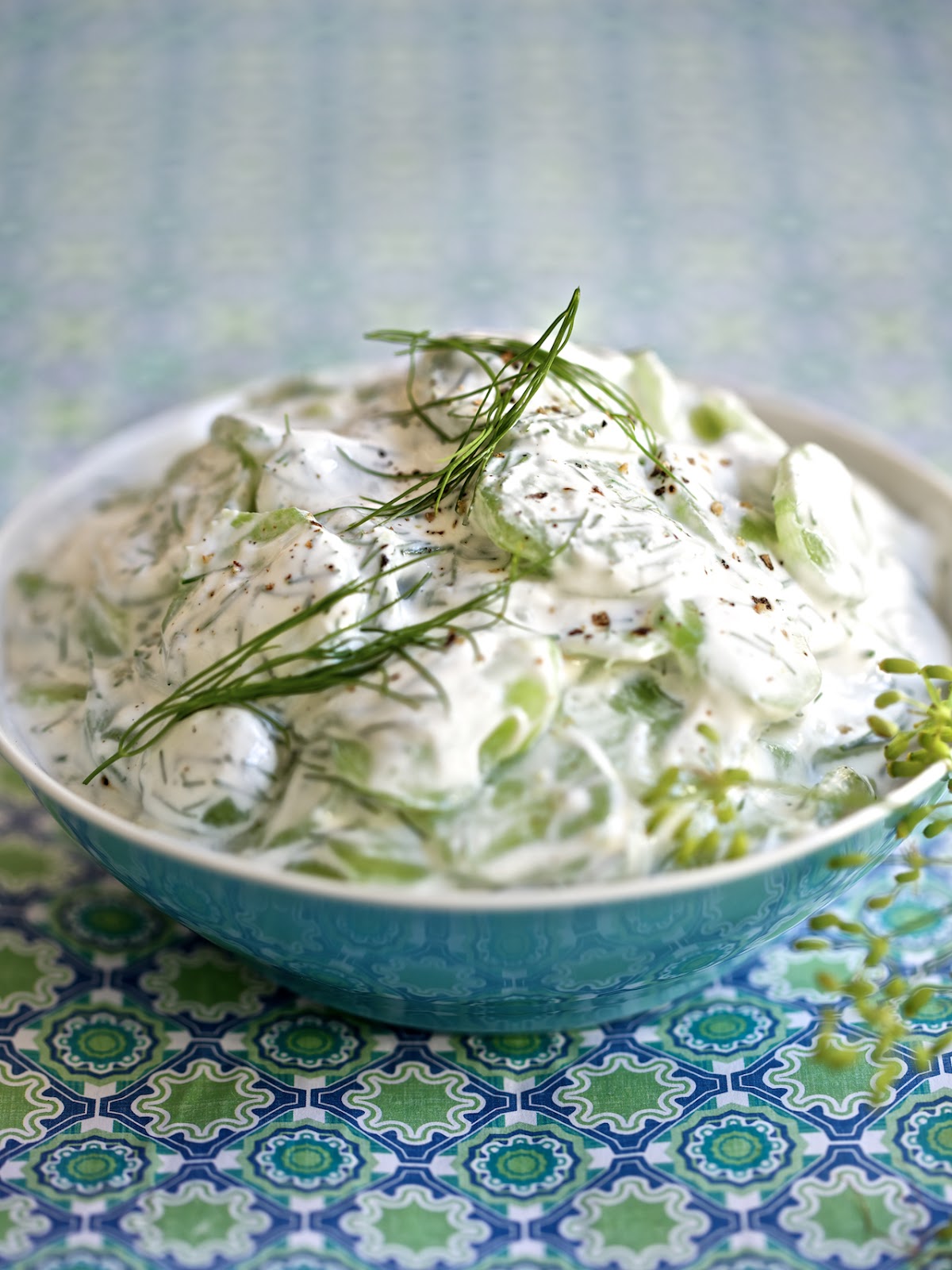 Sie erinnern mich sowohl äußerlich, als auch geschmacklich an die Gurken im Garten meiner Oma. Mir fallen die stacheligen Ranken ein, die über den Gehweg wucherten, das Dillkraut, das mich als Kind in den Beeten überragte, die großen Gläser mit den milchsauer eingelegten Gurken, die in der Sonne auf der Terrasse standen und die weiße Steingutschüssel in der meine Oma im Sommer kühlschrankkalte Rahmgurken auf den Tisch stellte. Wer nämlich denkt, dass die Griechen Erfinder der erfrischenden Gurkenbeilage sind, der irrt. Zumindest behaupte ich das jetzt mal. Und leider, ich muss Sie enttäuschen, meine Oma war es auch nicht. Das Grundrezept für Rahmgurken ist in Österreich älter, wie der älteste Grieche, ja, sogar älter wie meine Oma und die ist mittlerweile schon seeehr alt. Das Gemüse wird gehachelt, eingesalzen, mit viel Sauerrahm angemacht und dezent(!) mit Knoblauch gewürzt, nach Belieben noch mit Dill verfeinert. Fenchelkraut schmeckt aber auch gut.