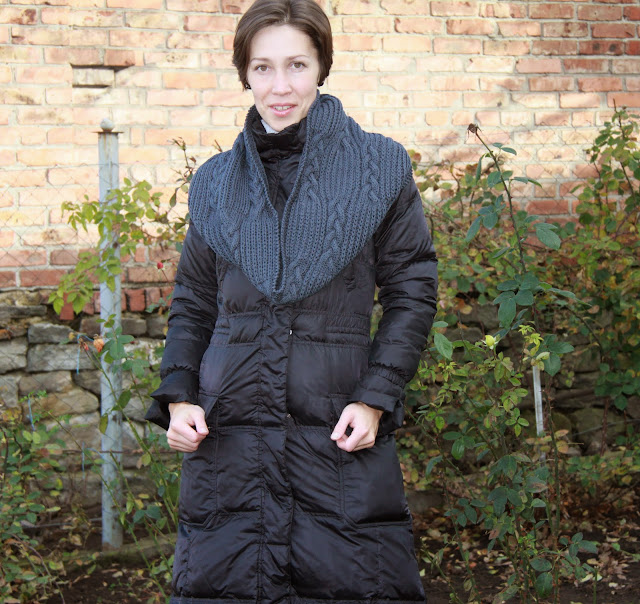 Снуд из Волмайзе в 2 нити, спицы 4,5, ушло полторы пасмы. Модель самопридуманная. Пряжа по-немецки добротно-прямолинейная, без всяких там итальянских нежностей, зато хорошей крутки, пилинговаться явно не будет.
