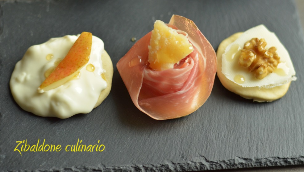 Dopo il successo che ebbero le sorelle Simili, molti forni a Bologna iniziarono a produrle e devo ammettere che sono molto piacevoli da accompagnare formaggi e salumi, in questo caso le ho preparate di una forma ben definita e farcite con le nostre bontà e un velo di miele, assemblando dei piccoli finger food ideale per un aperitivo davvero goloso!