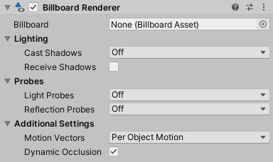 The Lighting section contains properties that specify how this Billboard Renderer interacts with lighting in Unity.