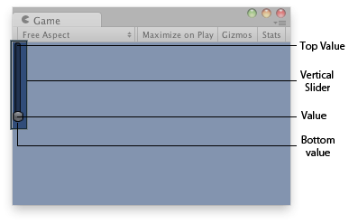 public class ExampleScript : MonoBehaviour { // Draws a vertical slider control that goes from 10 (top) to 0 (bottom) float vSliderValue = 0.0f;