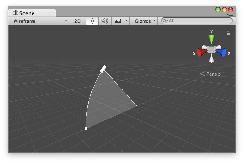 The following Custom Editor example allows you to edit the elevation angle and force properties for this component in the Scene view, where the force is represented by the radius of the handle.