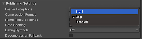 For more information on how to publish compressed builds, see Deploying compressed builds.
