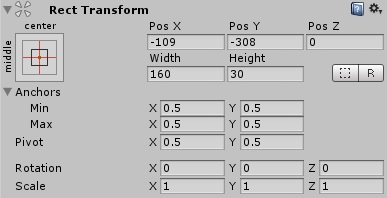 The Rect Transform component is the 2D layout counterpart of the Transform component. Where Transform represents a single point, Rect Transform represent a rectangle that a UI element can be placed inside. If the parent of a Rect Transform is also a Rect Transform, the child Rect Transform can also specify how it should be positioned and sized relative to the parent rectangle.