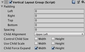 | Control Child Size | Whether the Layout Group controls the width and height of its child layout elements. |
