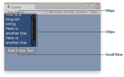 // The string to display inside the scrollview. 2 buttons below add & clear this string. string longString = "This is a long-ish string";